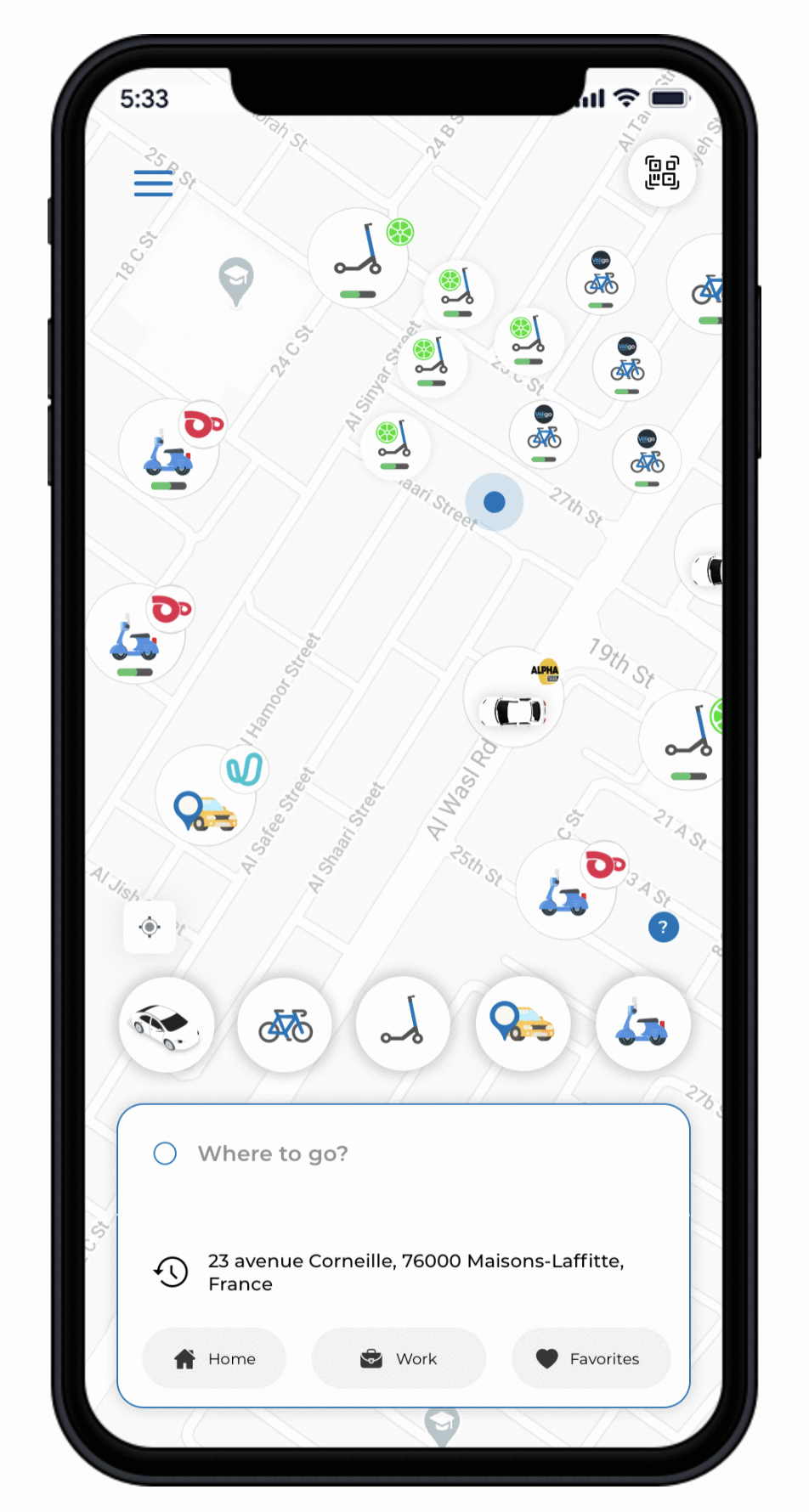 Yuwway is a comparison and booking application of daily transport offers. It centralizes the applications taxis, vtc, bicycles, scooters, carsharing, carpooling and public transport. No need to download them all, the payment is done from a single interface.